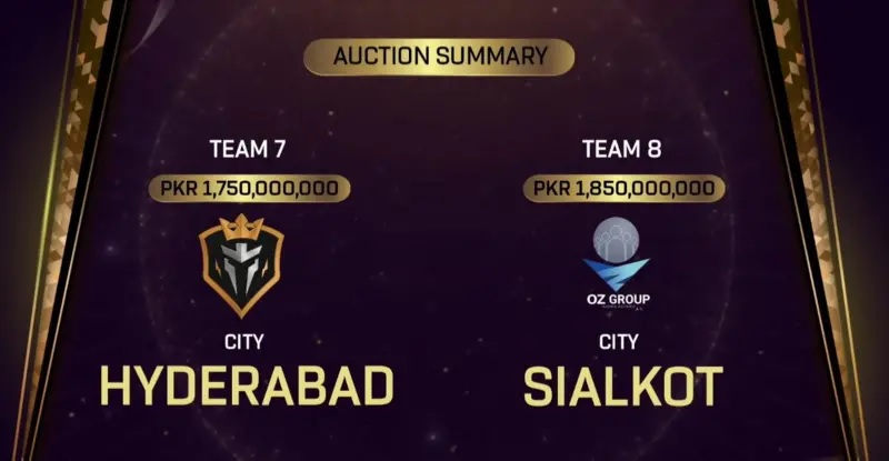 Meanwhile, the eighth team, Sialkot, was secured by OzZ Developers with a successful bid of 1.85 billion PKR.